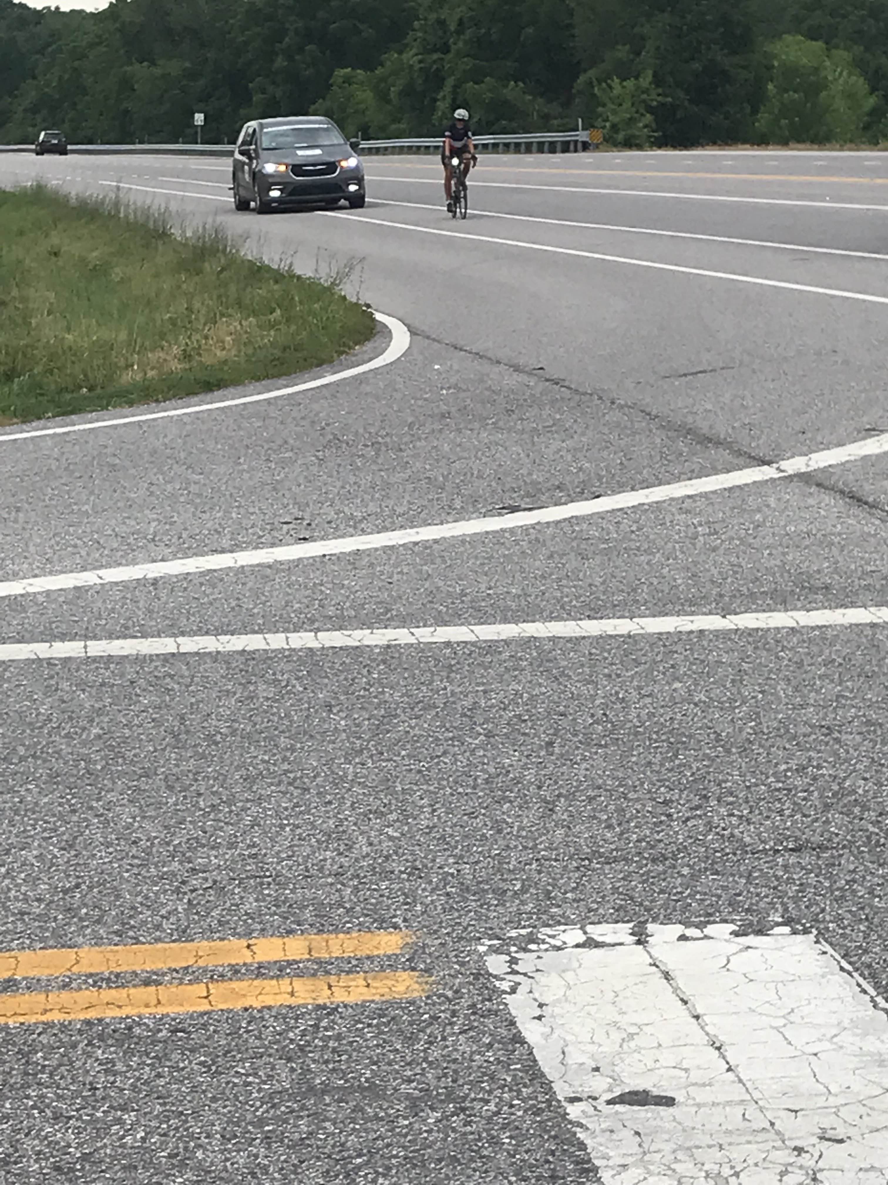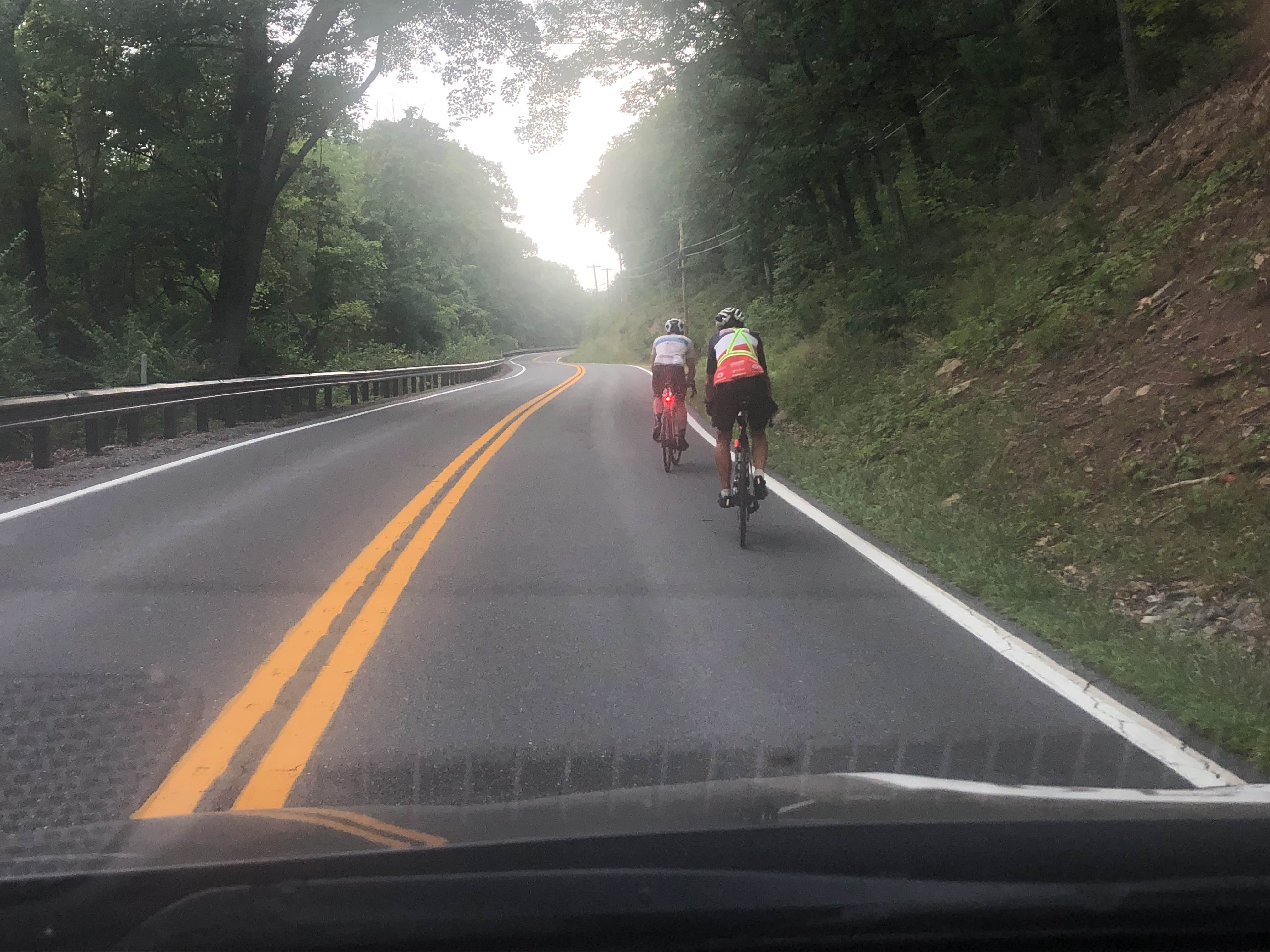 Ingolf passes 25 year-old French rider climbing Sideling Hill in Hancock MD, his fourth climb of the day of over 1000’p